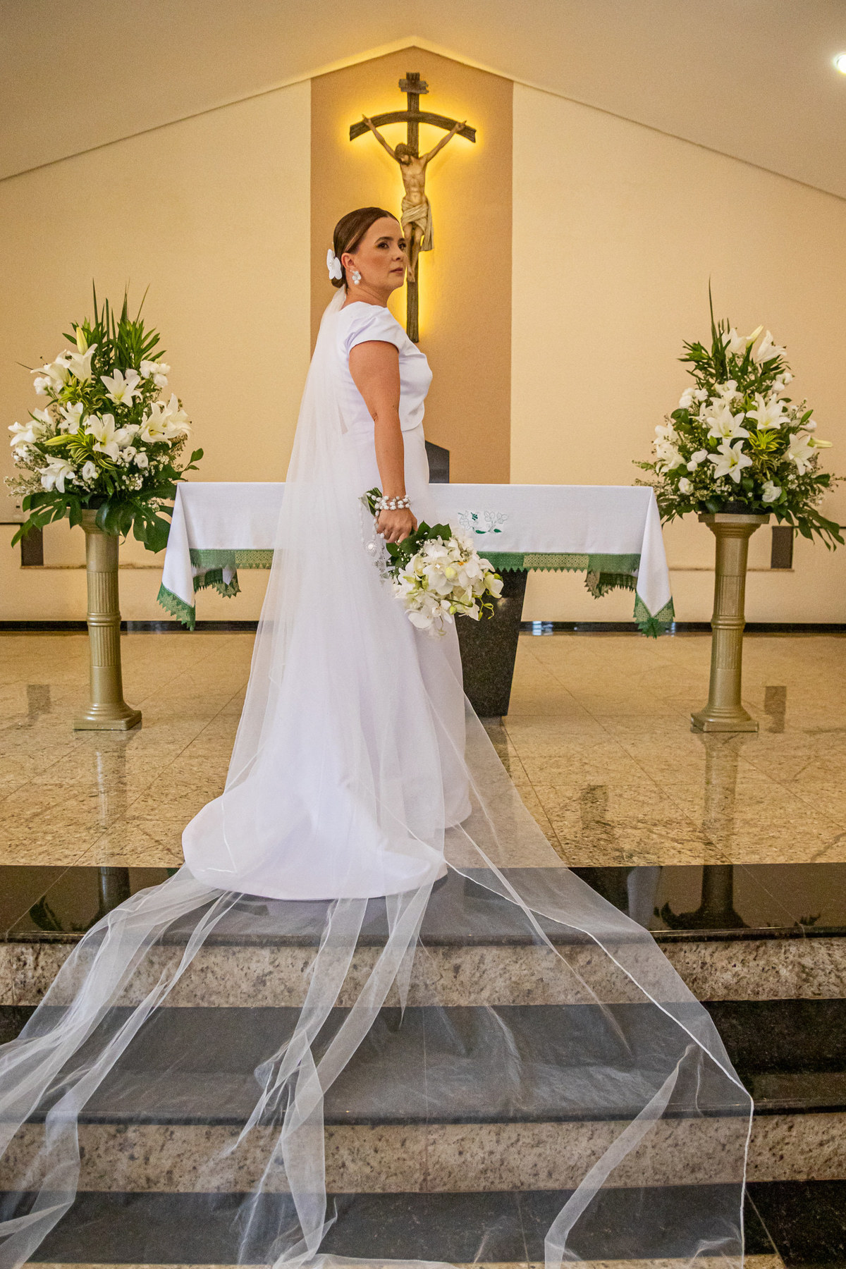 O vestido da noiva, confeccionado com maestria pelo Ateliê Heloisa, destacou a elegância e a graça de Simone, fazendo dela uma verdadeira visão de beleza. A maquiagem e o penteado, realizados pelo talentoso @victorarmelin, completaram o look deslumbrante, garantindo que a noiva estivesse radiante em todos os momentos.
