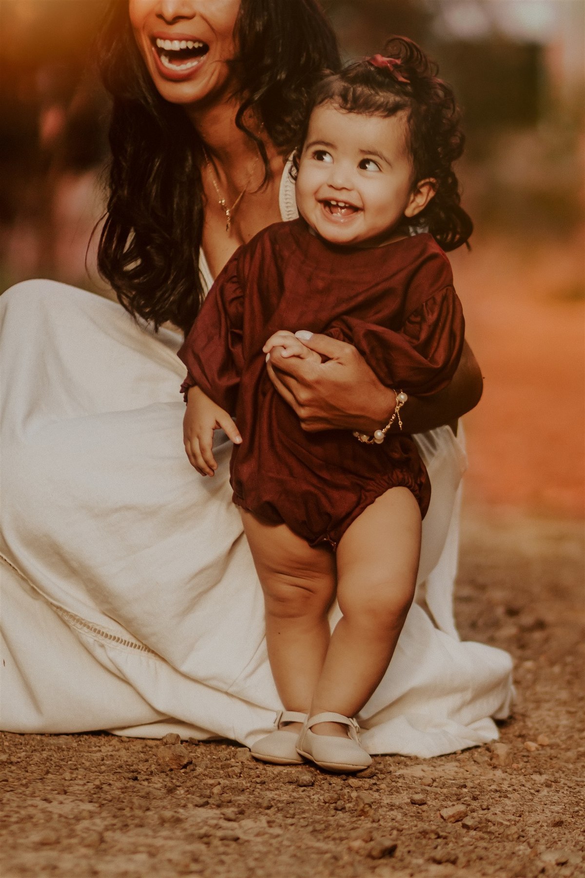 As fotografias deste ensaio emanam ternura e cumplicidade, retratando a conexão profunda entre mãe e filha. Seja em poses carinhosas, com a pequena Maite em braços, ou em registros espontâneos de suas interações, fica evidente o vínculo especial que as une.